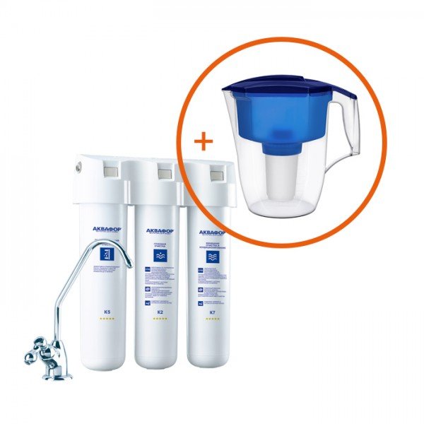 Обратноосмотические фильтры используются для абсолютной защиты от накипи, т.к. полностью устраняют соли жесткости из воды.нетЧисло ступеней очисткиКартриджи последовательно очищают воду и от видимых примесей, и от растворенных. Первый картридж задерживает более крупные частицы, а каждый последующий - более мелкие. Чем больше ступеней - тем лучше фильтр очистит воду: поймает более мелкие видимые частицы ржавчины, песка и ила, успеет захватить из воды максимум растворенных примесей - хлора, нитратов, тяжелых металлов и других.3Механическая фильтрацияЗадерживает ржавчину, ил, песок, как “сито”. Если в фильтре несколько картриджей - первый отсекает самые крупные частицы, а каждый последующий - более мелкие. Существуют картриджи, в которых есть только механическая очистка (полипропиленовые, не “впитывают” растворенные примеси). Они обычно стоят первыми по ходу воды, чтобы продлить жизнь угольным (сорбционным) картриджам, которые ещё и впитывают вредные примеси, как губка.даИонный обменНужен, чтобы умягчать воду, а также задерживать тяжелые металлы. За это отвечают ионно-обменная смола и Аквален (волокна, которые есть во всех фильтрах Аквафор, чтобы устранять тяжелые металлы даже из жесткой воды). Чем больше ионно-обменной смолы - тем лучше фильтр справится с жесткостью. В небольшом количестве она есть во всех фильтрах под мойку. Если же в фильтре есть отдельный картридж, заполненный такой смолой (например, KH), - фильтр помогает умягчать воду. Для слишком жесткой воды (более 5 мкв) лучше выбрать фильтр обратного осмоса.нетСорбцияСпособность “впитывать” из воды растворенные, “невидимые” вредные примеси, по принципу губки. Активированный уголь - основной сорбционный материал, который используется в картриджах фильтров для питьевой воды. Например, именно так из воды удаляется хлор.даУмягчениеУдаление из воды солей жесткости (солей кальция и магния, из-за которых образуется накипь в чайнике, белые пятна на посуде, известковый налет). Фильтры обратного осмоса абсолютно умягчают воду с любой концентрацией солей (то есть удаляют соли жесткости полностью). Проточные фильтры со специальными картриджами рекомендуются только для умягчения воды средней жесткости (той, в которой средняя концентрация солей кальция и магния - до 5 млэкв/литр).нетМинерализацияПроисходит после финишной очистки воды. Необходима прежде всего в фильтре обратного осмоса, поскольку такой фильтр полностью устраняет из воды все примеси, в том числе минералы. Минералы добавляются в оптимальной концентрации - для пользы и привычного вкуса воды.нетПостфильтрацияФинальный этап очистки воды: картриджи постфильтрации удаляют самые мелкие механические частицы и кондиционируют воду, придавая ей более приятный вкус.нетПрименениедля холодной водыНакопительная емкостьОбычно нужна в фильтрах обратного осмоса. Глубокая фильтрация требует времени. Чтобы Вам не приходилось ждать, пока вода наберется в чайник или кастрюлю, почти во всех моделях используется накопительный бак для чистой воды или другая емкость. В стандартном фильтре обратного осмоса под мойку воды в баке достаточно для семьи из 5-6 человек.нетФильтрует частицы крупнее, мкмЧем меньше цифра, тем более мелкие частицы способен задержать фильтр. Например, любой фильтр под мойку справится с ржавчиной, илом и