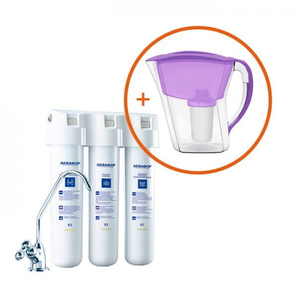 Обратноосмотические фильтры используются для абсолютной защиты от накипи, т.к. полностью устраняют соли жесткости из воды.нетЧисло ступеней очисткиКартриджи последовательно очищают воду и от видимых примесей, и от растворенных. Первый картридж задерживает более крупные частицы, а каждый последующий - более мелкие. Чем больше ступеней - тем лучше фильтр очистит воду: поймает более мелкие видимые частицы ржавчины, песка и ила, успеет захватить из воды максимум растворенных примесей - хлора, нитратов, тяжелых металлов и других.3Механическая фильтрацияЗадерживает ржавчину, ил, песок, как “сито”. Если в фильтре несколько картриджей - первый отсекает самые крупные частицы, а каждый последующий - более мелкие. Существуют картриджи, в которых есть только механическая очистка (полипропиленовые, не “впитывают” растворенные примеси). Они обычно стоят первыми по ходу воды, чтобы продлить жизнь угольным (сорбционным) картриджам, которые ещё и впитывают вредные примеси, как губка.даИонный обменНужен, чтобы умягчать воду, а также задерживать тяжелые металлы. За это отвечают ионно-обменная смола и Аквален (волокна, которые есть во всех фильтрах Аквафор, чтобы устранять тяжелые металлы даже из жесткой воды). Чем больше ионно-обменной смолы - тем лучше фильтр справится с жесткостью. В небольшом количестве она есть во всех фильтрах под мойку. Если же в фильтре есть отдельный картридж, заполненный такой смолой (например, KH), - фильтр помогает умягчать воду. Для слишком жесткой воды (более 5 мкв) лучше выбрать фильтр обратного осмоса.даСорбцияСпособность “впитывать” из воды растворенные, “невидимые” вредные примеси, по принципу губки. Активированный уголь - основной сорбционный материал, который используется в картриджах фильтров для питьевой воды. Например, именно так из воды удаляется хлор.даУмягчениеУдаление из воды солей жесткости (солей кальция и магния, из-за которых образуется накипь в чайнике, белые пятна на посуде, известковый налет). Фильтры обратного осмоса абсолютно умягчают воду с любой концентрацией солей (то есть удаляют соли жесткости полностью). Проточные фильтры со специальными картриджами рекомендуются только для умягчения воды средней жесткости (той, в которой средняя концентрация солей кальция и магния - до 5 млэкв/литр).нетМинерализацияПроисходит после финишной очистки воды. Необходима прежде всего в фильтре обратного осмоса, поскольку такой фильтр полностью устраняет из воды все примеси, в том числе минералы. Минералы добавляются в оптимальной концентрации - для пользы и привычного вкуса воды.нетПостфильтрацияФинальный этап очистки воды: картриджи постфильтрации удаляют самые мелкие механические частицы и кондиционируют воду, придавая ей более приятный вкус.нетПрименениедля холодной водыНакопительная емкостьОбычно нужна в фильтрах обратного осмоса. Глубокая фильтрация требует времени. Чтобы Вам не приходилось ждать, пока вода наберется в чайник или кастрюлю, почти во всех моделях используется накопительный бак для чистой воды или другая емкость. В стандартном фильтре обратного осмоса под мойку воды в баке достаточно для семьи из 5-6 человек.нетФильтрует частицы крупнее, мкмЧем меньше цифра, тем более мелкие частицы способен задержать фильтр. Например, любой фильтр под мойку справится с ржавчиной, илом и 