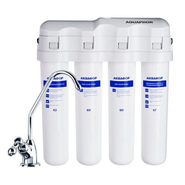 Обратноосмотические фильтры используются для абсолютной защиты от накипи, т.к. полностью устраняют соли жесткости из воды.нетЧисло ступеней очисткиКартриджи последовательно очищают воду и от видимых примесей, и от растворенных. Первый картридж задерживает более крупные частицы, а каждый последующий - более мелкие. Чем больше ступеней - тем лучше фильтр очистит воду: поймает более мелкие видимые частицы ржавчины, песка и ила, успеет захватить из воды максимум растворенных примесей - хлора, нитратов, тяжелых металлов и других.4МинерализацияПроисходит после финишной очистки воды. Необходима прежде всего в фильтре обратного осмоса, поскольку такой фильтр полностью устраняет из воды все примеси, в том числе минералы. Минералы добавляются в оптимальной концентрации - для пользы и привычного вкуса воды.нетПостфильтрацияФинальный этап очистки воды: картриджи постфильтрации удаляют самые мелкие механические частицы и кондиционируют воду, придавая ей более приятный вкус.нетНакопительная емкостьОбычно нужна в фильтрах обратного осмоса. Глубокая фильтрация требует времени. Чтобы Вам не приходилось ждать, пока вода наберется в чайник или кастрюлю, почти во всех моделях используется накопительный бак для чистой воды или другая емкость. В стандартном фильтре обратного осмоса под мойку воды в баке достаточно для семьи из 5-6 человек.нетФильтрующий модуль в комплектедаОтдельный крандаДавление в водопроводе не более, атмМаксимальное давление воды на входе в систему, при котором возможна стабильная работа фильтра.6,5Ширина, смОбратите внимание на габариты фильтра, и измерьте, сколько свободного пространства в предполагаемом месте установки.37,7Глубина, смОбратите внимание на габариты фильтра, и измерьте, сколько свободного пространства в предполагаемом месте установки.9,2Защита корпуса от гидроударовдаИсходная водаЖесткая вода – вода с избытком минеральных солей. От нее появляется накипь в чайнике, известковый налет на сантехнике и разводы на посуде. Мягкая вода – та, в которой мало минеральных солей. Нет накипи в чайнике и разводов на посуде. Фильтры для мутной воды и фильтры от ржавчины, как правило, имеют несколько стадий очистки и дополнительный полипропиленовый картридж. Он задерживает механические частицы ила, песка и ржавчины и защищает картриджи более глубокой очистки.жёсткаяУстраняет мутностьМутность водопроводной воды может говорить о том, что в ней много мелких механических частиц. Важно, чтобы в фильтре был установлен дополнительные картридж механической предфильтрации (полипропиленовый) - он продлит жизнь остальным картриджам более тонкой очистки.даУстраняет ржавчину, бурый осадокЛюбой фильтр под мойку удалит из воды крупные и мелкие частицы ржавчины. Некоторые фильтры имеют повышенный ресурс по железу: они дольше служат в такой воде, поскольку лучше подходят для удаления из воды железа и механических частиц ржавчины.нетЗащита от бактерийВсе проточные фильтры в той или иной степени защищают от бактерий. Например, добавление серебра препятствует их размножению. Это стандартная степень защиты. Если в семье есть дети, пожилые люди или аллергики, воду рекомендуется обеззараживать, то есть полностью удалять микроорганизмы. Повышенную защиту от бактерий дают фильтры с половолоконной мембраной. Это пучок тру
