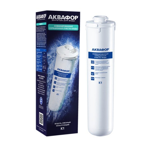 Вес, кг (нетто) изделия0,6Механическая фильтрацияЗадерживает ржавчину, ил, песок, как “сито”. Если в фильтре несколько картриджей - первый отсекает самые крупные частицы, а каждый последующий - более мелкие. Существуют картриджи, в которых есть только механическая очистка (полипропиленовые, не “впитывают” растворенные примеси). Они обычно стоят первыми по ходу воды, чтобы продлить жизнь угольным (сорбционным) картриджам, которые ещё и впитывают вредные примеси, как губка.даИонный обменНужен, чтобы умягчать воду, а также задерживать тяжелые металлы. За это отвечают ионно-обменная смола и Аквален (волокна, которые есть во всех фильтрах Аквафор, чтобы устранять тяжелые металлы даже из жесткой воды). Чем больше ионно-обменной смолы - тем лучше фильтр справится с жесткостью. В небольшом количестве она есть во всех фильтрах под мойку. Если же в фильтре есть отдельный картридж, заполненный такой смолой (например, KH), - фильтр помогает умягчать воду. Для слишком жесткой воды (более 5 мкв) лучше выбрать фильтр обратного осмоса.даСорбцияСпособность “впитывать” из воды растворенные, “невидимые” вредные примеси, по принципу губки. Активированный уголь - основной сорбционный материал, который используется в картриджах фильтров для питьевой воды. Например, именно так из воды удаляется хлор.даУмягчениеУдаление из воды солей жесткости (солей кальция и магния, из-за которых образуется накипь в чайнике, белые пятна на посуде, известковый налет). Фильтры обратного осмоса абсолютно умягчают воду с любой концентрацией солей (то есть удаляют соли жесткости полностью). Проточные фильтры со специальными картриджами рекомендуются только для умягчения воды средней жесткости (той, в которой средняя концентрация солей кальция и магния - до 5 млэкв/литр).нетПрименениедля холодной водыФильтрует частицы крупнее, мкмЧем меньше цифра, тем более мелкие частицы способен задержать фильтр. Например, любой фильтр под мойку справится с ржавчиной, илом и песком, но не каждый - с бактериями (на это способен картридж с половолоконной мембраной и системы обратного осмоса). Если в фильтре несколько картриджей - первый отсекает самые крупные частицы, а каждый последующий - более мелкие. Цифра указана для картриджа самой тонкой очистки.3,0